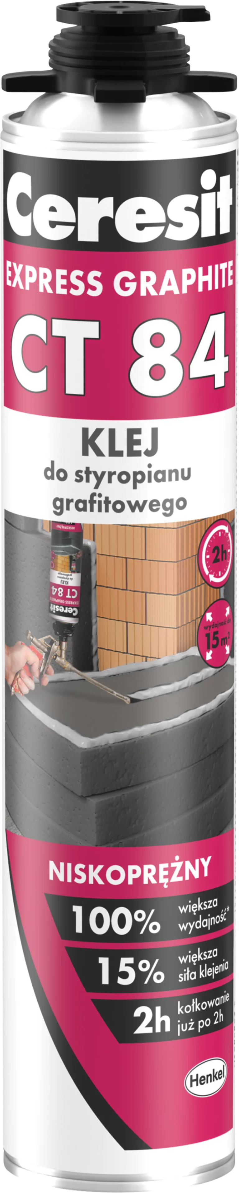 CERESIT® CT 84 Express Graphite służy do mocowania styropianu grafitowego EPS do podłoży takich jak: cegła ceramiczna, beton, drewno, płyta OSB, blacha, beton, szkło, bitumy, płyta gipsowo-kartonowa. Szczególnie przeznaczony do klejenia płyt styropianowych grafitowych w złożonych systemach ociepleniowych CERESIT Ceretherm, do uzupełniania kleju w przypadku klawiszowania płyt w istniejącym ociepleniu, do przyklejania płyt styropianowych w przypadku „ocieplenia na ocieplenie” i ocieplania fundamentów. Rozmiary opakowań: pojemnik 850 ml