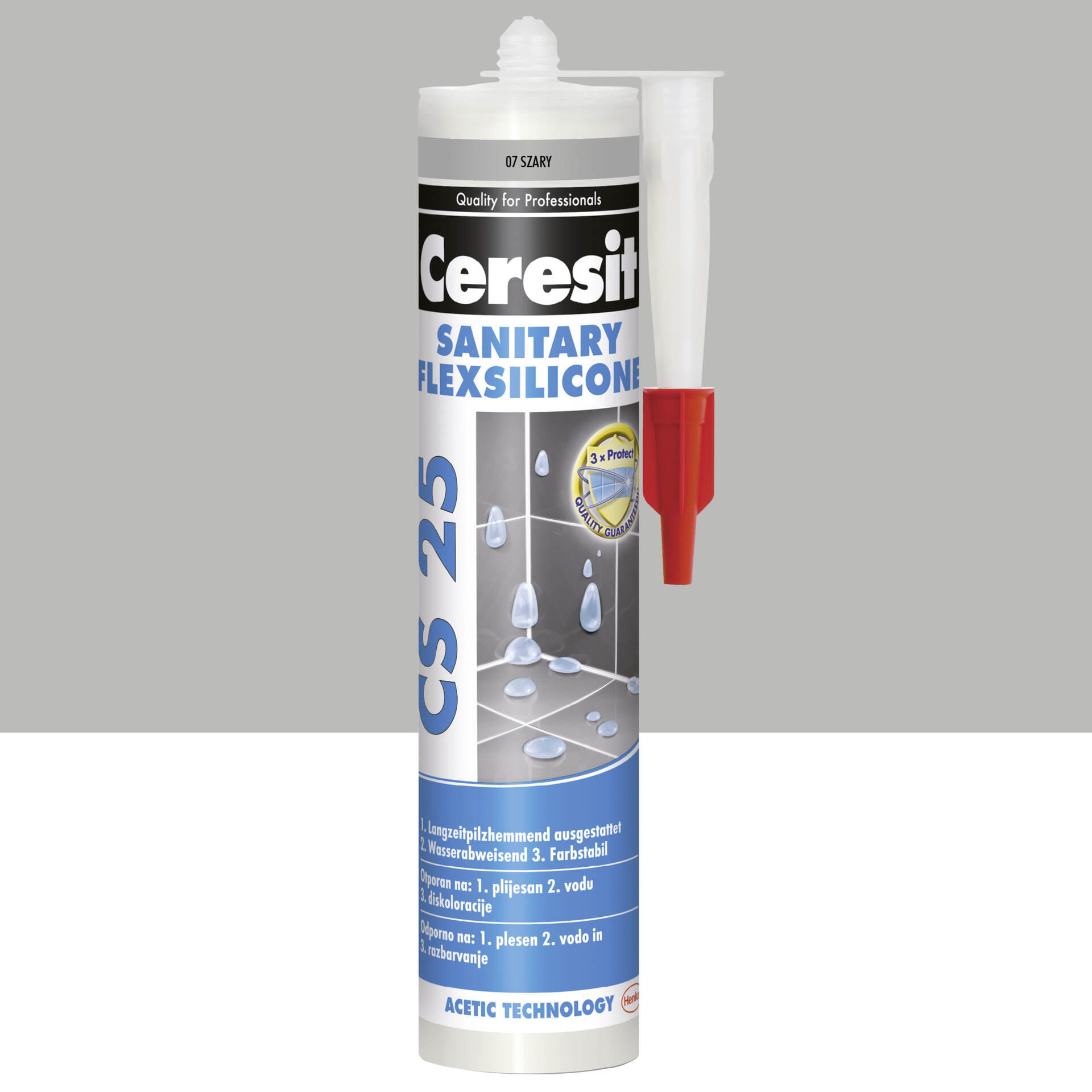 Nowa formuła CS 25 MicroProtect zawiera substancje czynne, które blokują rozwój grzybów i pleśni na 3 sposoby: minimalizują możliwość powstawania zarodników pleśni, hamują ich wzrost oraz możliwość rozprzestrzeniania się. Zapewnia to długotrwałą ochronę przeciwko grzybom i pleśni, a zawarte w silikonie substancje grzybobójcze powodują, że spoiny na których nie zatrzymuje się woda pozostają czyste i lśniące.