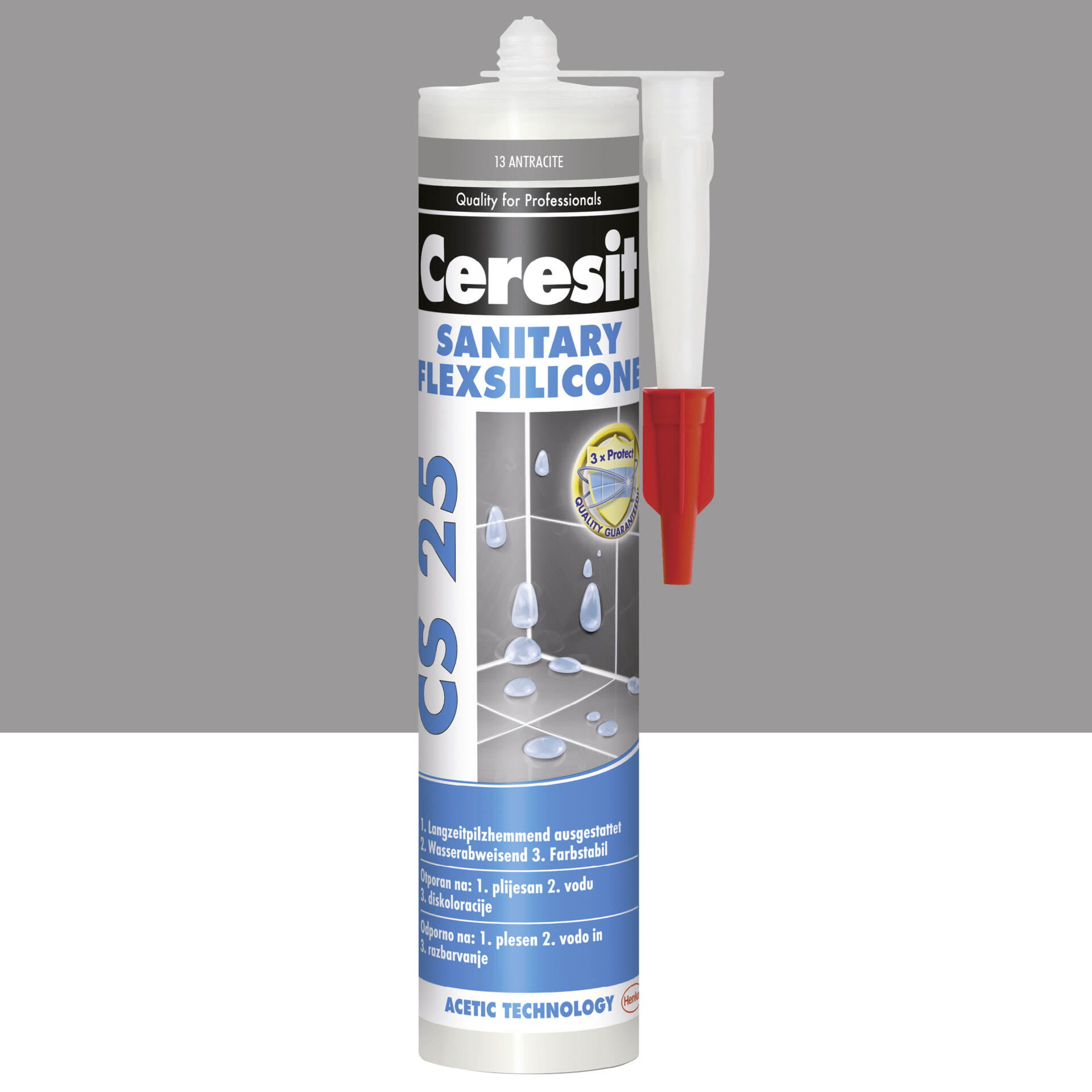 Nowa formuła CS 25 MicroProtect zawiera substancje czynne, które blokują rozwój grzybów i pleśni na 3 sposoby: minimalizują możliwość powstawania zarodników pleśni, hamują ich wzrost oraz możliwość rozprzestrzeniania się. Zapewnia to długotrwałą ochronę przeciwko grzybom i pleśni, a zawarte w silikonie substancje grzybobójcze powodują, że spoiny na których nie zatrzymuje się woda pozostają czyste i lśniące.