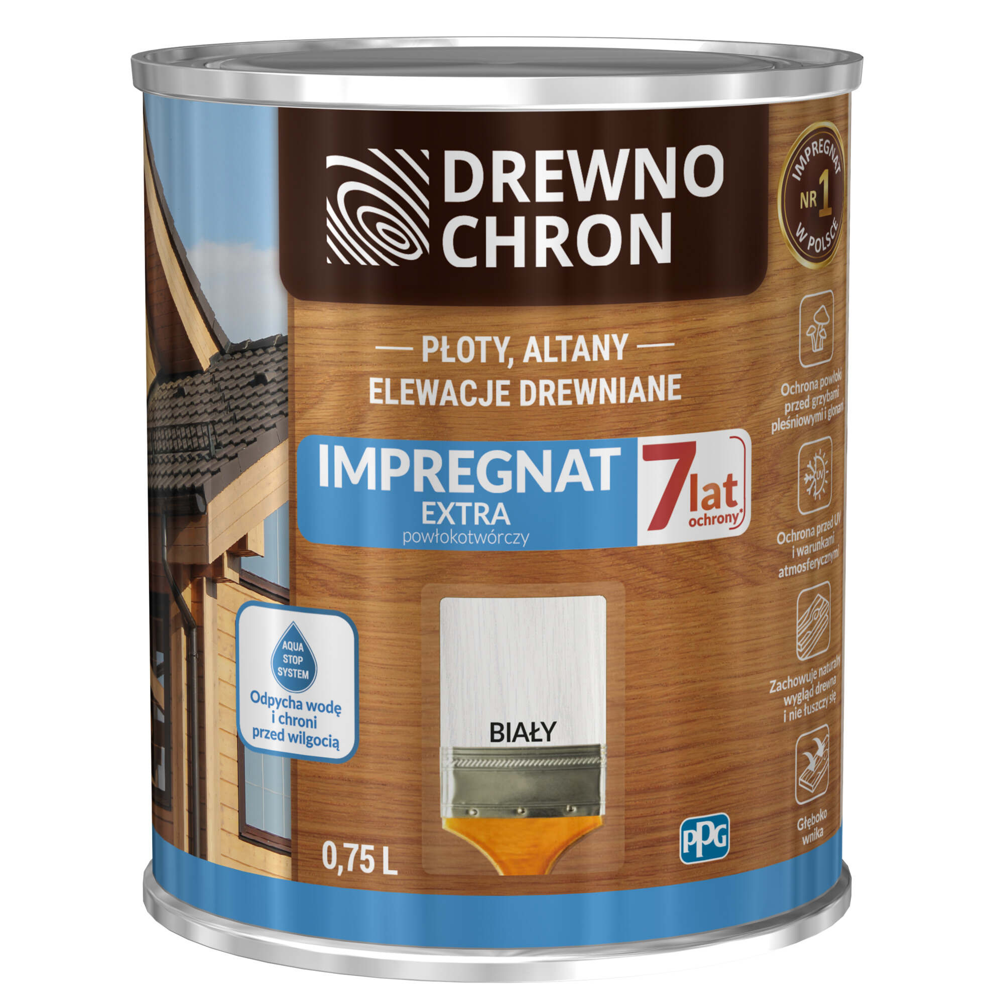 Impregnat przeznaczony jest do ochronnego i dekoracyjnego malowania przedmiotów drewnianych na zewnątrz pomieszczeń (drzwi, okna, meble ogrodowe, boazerie zewnętrzne, altanki, domki letniskowe, płoty, konstrukcje stropów i dachów, itp.) oraz wewnątrz pomieszczeń nieprzeznaczonych na stały pobyt ludzi np. strychy, poddasza. Aqua Stop System to technologia, która opiera się na zastosowaniu specjalnych, odpychających wodę cząsteczek oligomerycznych, dzięki którym powierzchnia drewna jest perfekcyjnie zabezpieczona przed wnikaniem wody, która łatwo spływa z powłoki. Poprzez zastosowanie tej technologii pomalowane drewno jest odporne na działanie czynników atmosferycznych. Powłoka chroniona jest przed grzybami pleśniowymi i glonami. Impregnat Extra Powłokotwórczy stosowany na surowe drewno wymaga zagruntowania środkiem Drewnochron Impregnat Grunt R, który daje pełną ochronę biologiczną drewna.