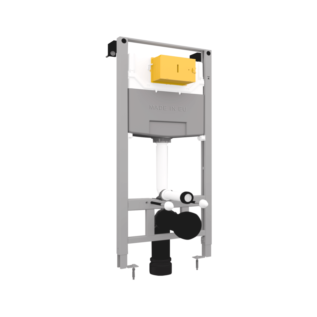 Stelaż wykonany jest z malowanej proszkowo stali odpornej na korozję. Posiada pionowe belki wspierające dodatkowo miskę WC oraz specjalny hamulec do regulacji wysokości nóżek, montowany wewnątrz profilu ramy. Pozwala on na łatwy montaż nawet przez jedną osobę.