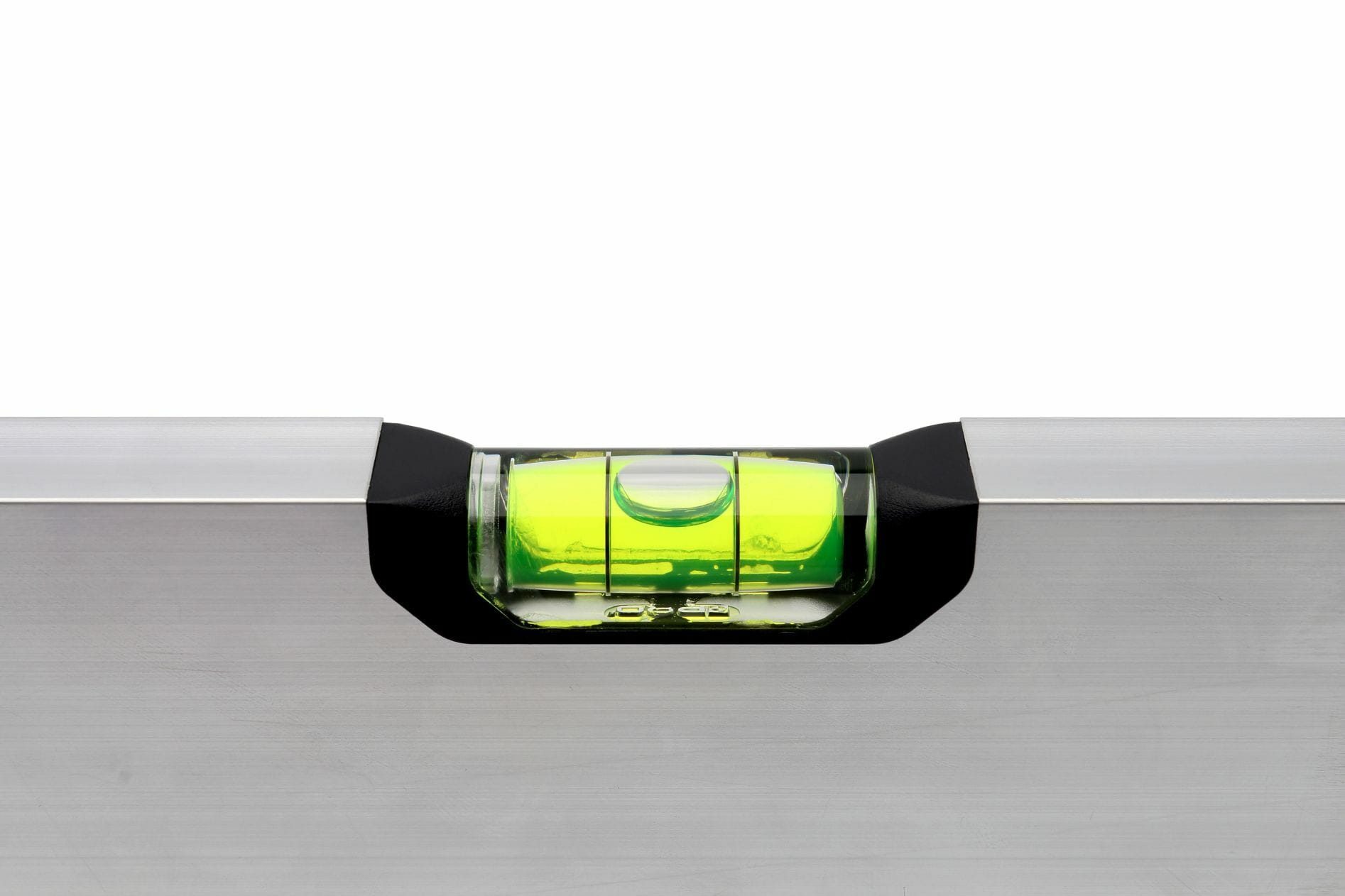 - Wyposażona w dwie libelle pomiarowe: poziomu i pionu oraz uchwyty