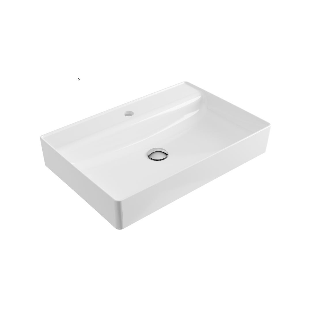 Rima 2.0 umywalka nablatowa 60x40 cm prostokątna z otworem na baterię, biały połysk