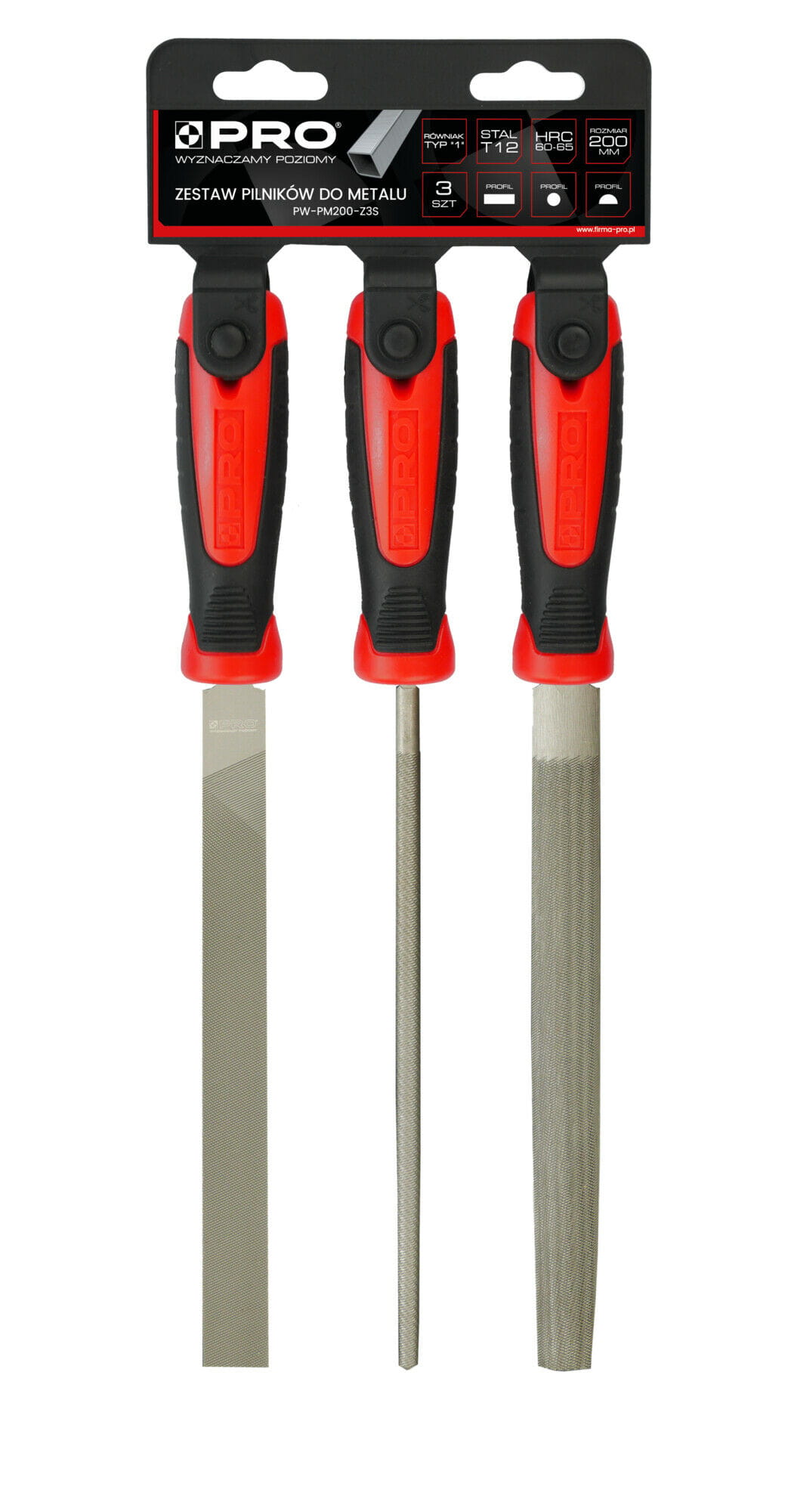 - Zestaw trzech pilników o profilu płaskim, okrągłym oraz półokrągłym
